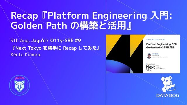 Recap『Platform Engineering 入門: Golden Path の構築と活用』 9th Aug, Jagu'e'r O11y-SRE