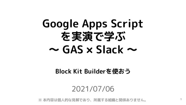 2021/07/06 1 ※ 本内容は個人的な見解であり、所属する組織と関係ありません。 Google Apps Script を実演で学ぶ ~ GAS