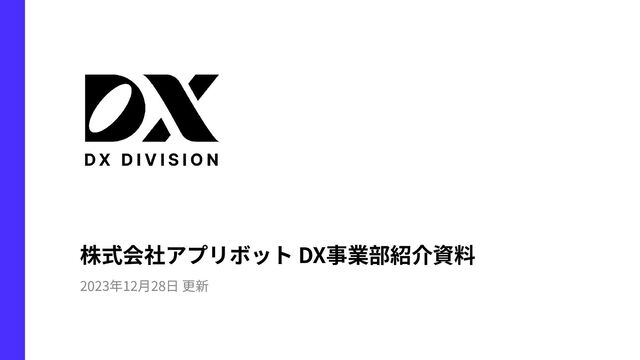 2021年 アプリボット内のDX事業部の⽴ち上げから開発ディレクター を担当。エンジニアリング‧要件定義‧開発進⾏を⼀貫して責任を持 ち、製造業における⼤規模DX開発に携わっている。 前⽥貴⽂(まえだたかふみ) ⽴命館⼤学法学部卒業。2010年サイバーエージェントに新卒⼊社。 2012年から株式会社アプリボットへ異動し、スマホゲーム『不良道 ギャングロード』など複数のゲームプロデューサーを務める。 2013年、Appstoreセールスランキング1位を獲得。 2019年、「作業からの解放」を掲げ、働き⽅改⾰室⻑に兼務。 エクセルやデータ作成など複数の社内業務効率化を担当し数千時間の 時間創出を実⾏。 2021年、アプリボット内のDX事業部の⽴ち上げ。 2023年、執⾏役員に就任。ゲーム事業全体の開発出⼒向上を兼務。 2 This material is confidential and the property of Applibot. 10年間以上スマートフォン向けのゲームの開発ノウハウを背景に ⾼い開発推進⼒と要件定義⼒で、製造業を中⼼とした御社DXを推進しております。