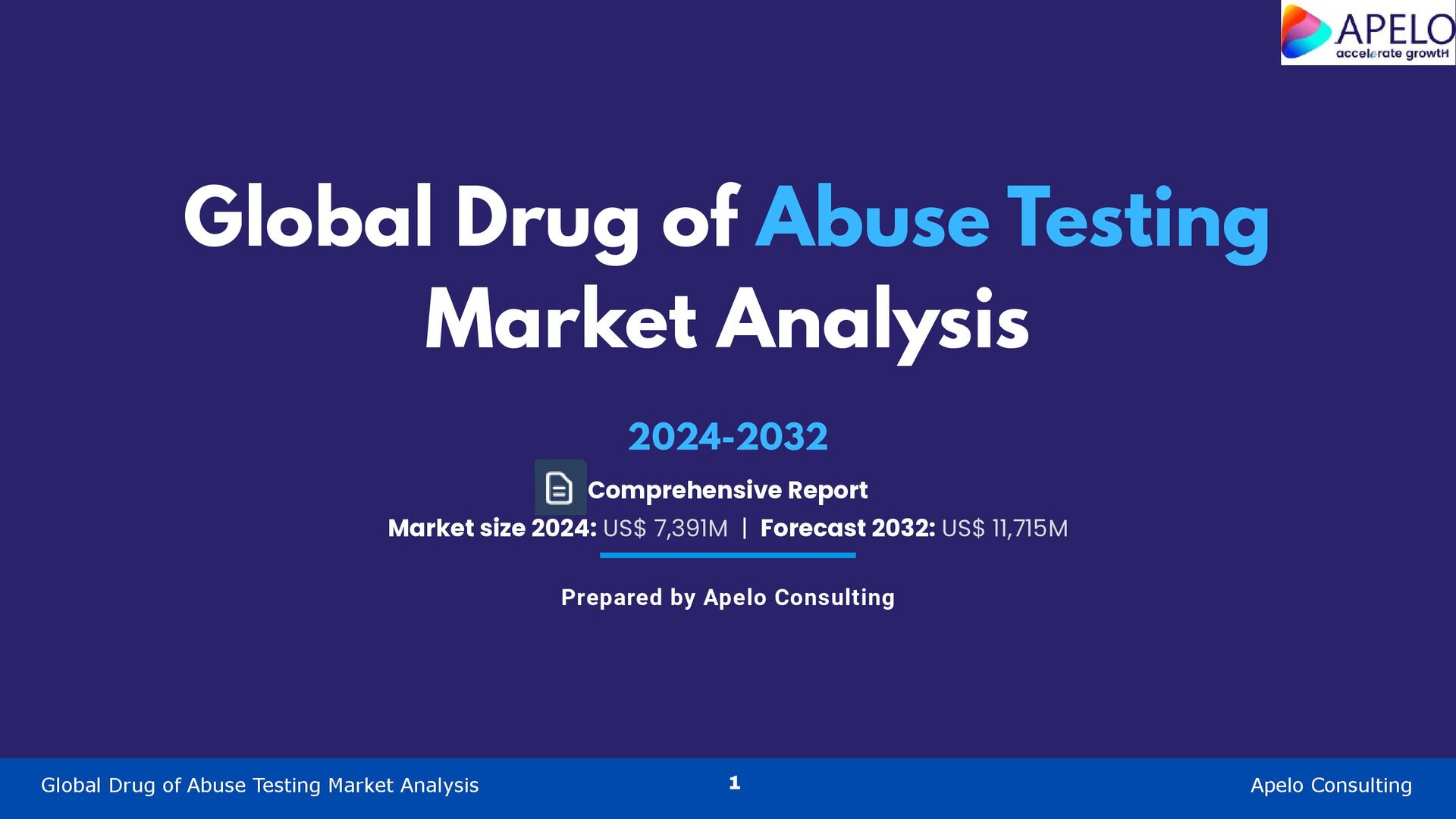 Apelo Consulting has released a report on “Drug of Abuse Testing Market (By Product Type, Sample Type, Drug Type, End Users, Region), Regulatory Status, Company Profiles and Market Dynamics – Global Forecast to 2032”