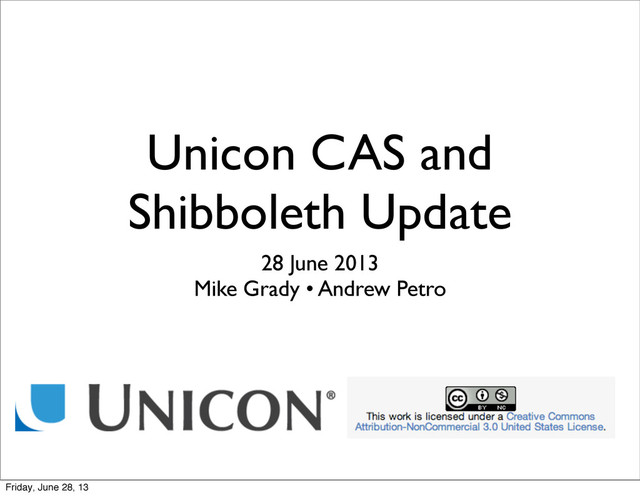since before CAS 3 • 7 years with Unicon, most of which in Cooperative Support • Unicon’s Cooperative Support for CAS technical lead Friday, June 28, 13