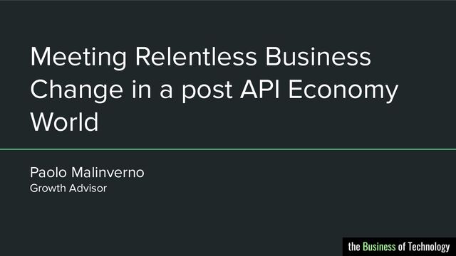 Meeting Relentless Business Change in a Post API Economy World
