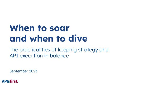 When to soar and when to dive: the practicalities of keeping strategy and API execution in balance