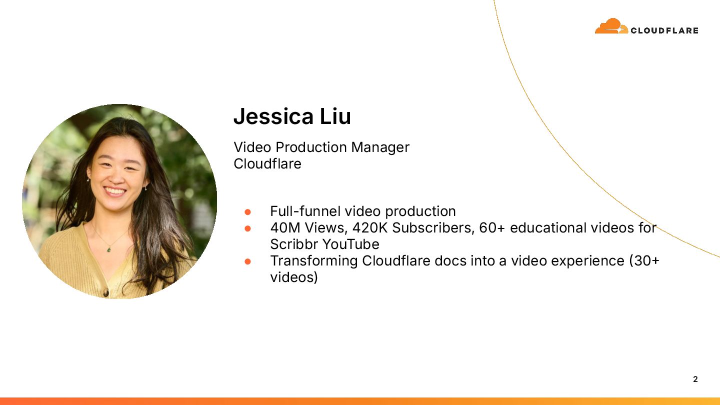 Speaker: Jessica Liu, Video Production Manager at Cloudflare