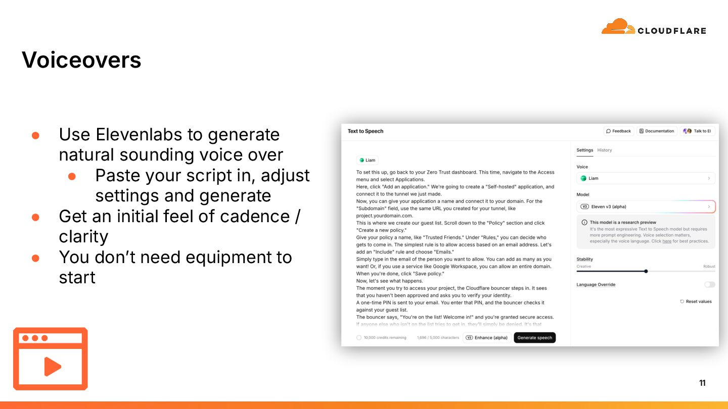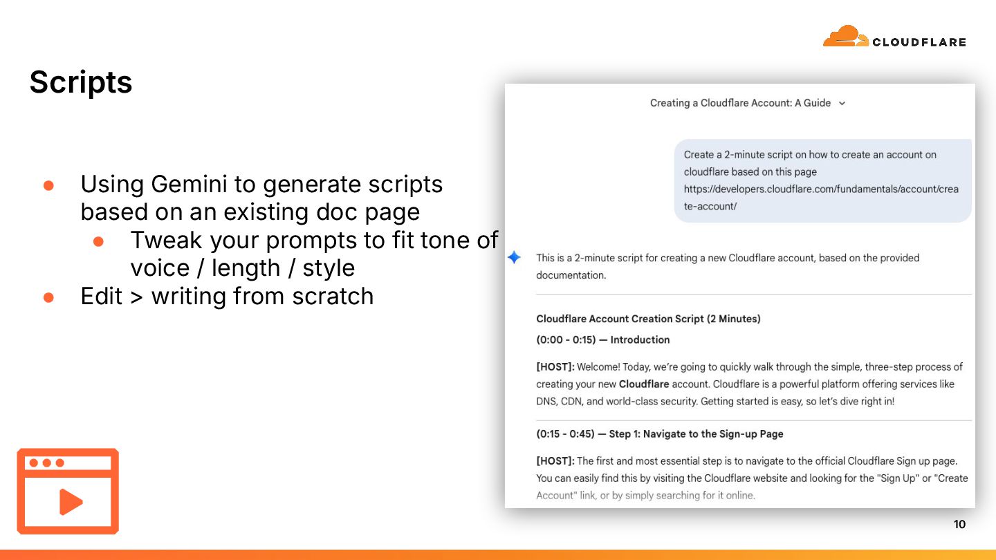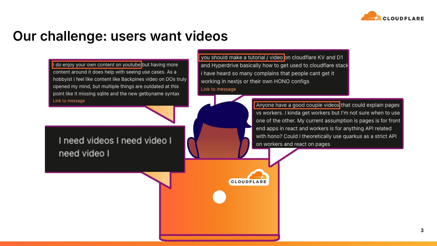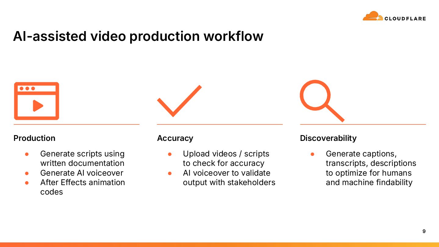 This presentation goes behind the scenes of Cloudflare’s Product Content Experience (PCX) team to share a practical, "messy" story of innovation. Learn how to bridge the gap between technical writing and video production using AI-driven workflows that maintain accuracy while scaling reach.
