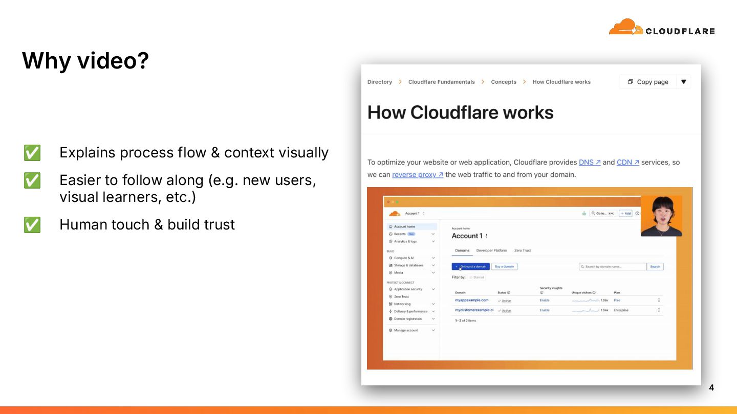 Is the future of developer documentation strictly text-based? At AI the Docs Paris 2025, Jessica Liu (Video Production Manager at Cloudflare) revealed how Cloudflare is redefining the documentation landscape by transforming static guides into multimodal video experiences.