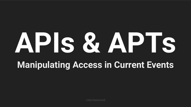 APIs & APTs: Manipulating Access in Current Events