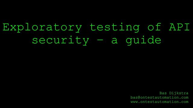 Exploratory Testing of API Security - a Guide