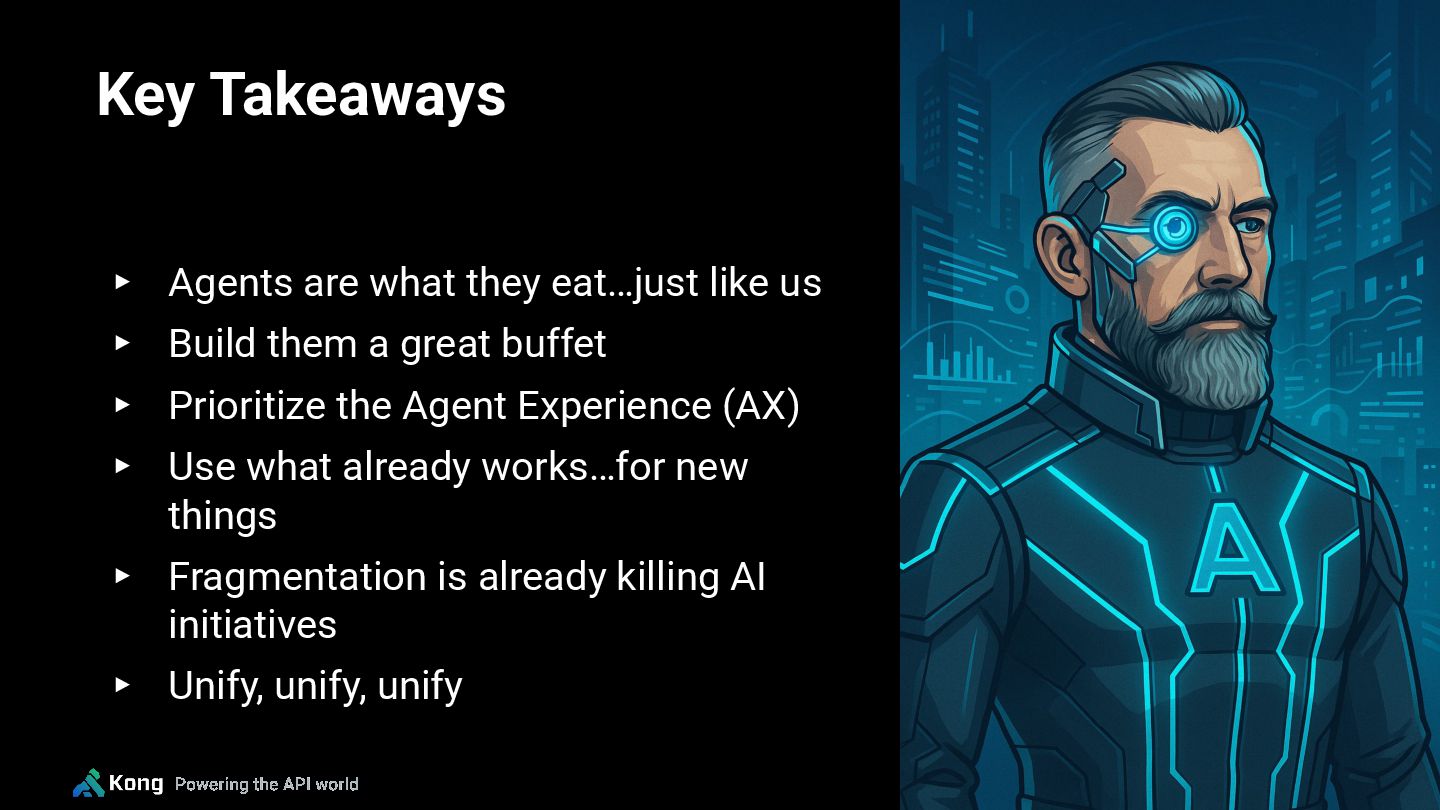 This session by Alex Drag, Head of Product Marketing at Kong, discovers how a unified API Platform becomes a 5-star agentic-ready buffet: self-serve, governed, and always fresh. Learn how to design and deliver the right experiences to power the next generation of intelligent, automated, and AI-driven systems.