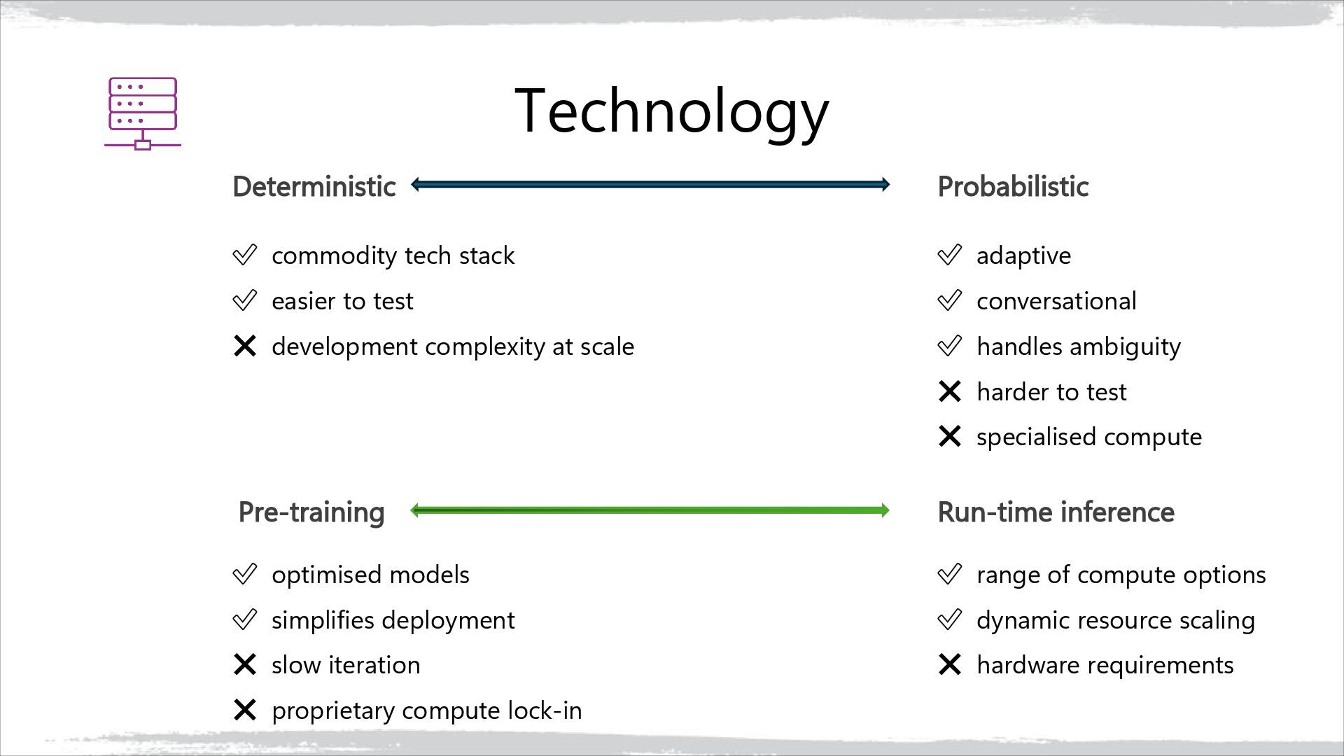 Generative AI promises to reshape every industry, but a one-size-fits-all approach is a recipe for failure. Where and when should you use what kind of AI? In his session at apidays Australia 2025, Rob dissects the critical trade-offs between probabilistic models that offer creativity and power, and deterministic systems that deliver predictable precision. Navigate the complex landscape of capability, cost, compliance, and risk - helping you choose the right AI for the right job.