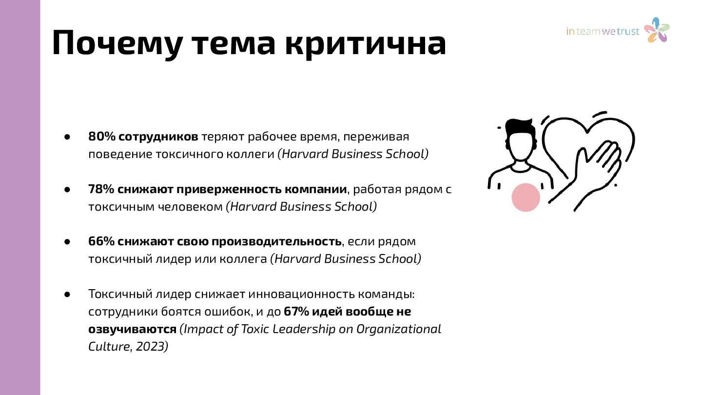 Эта презентация предлагает системный подход к диагностике и трансформации токсичного поведения в командах. Вместо поиска «плохого босса» вы узнаете, как токсичность формируется на стыке лидера, последователей и организационной среды — в рамках модели «Токсичного треугольника» (Padilla, Hogan & Kaiser, 2007).