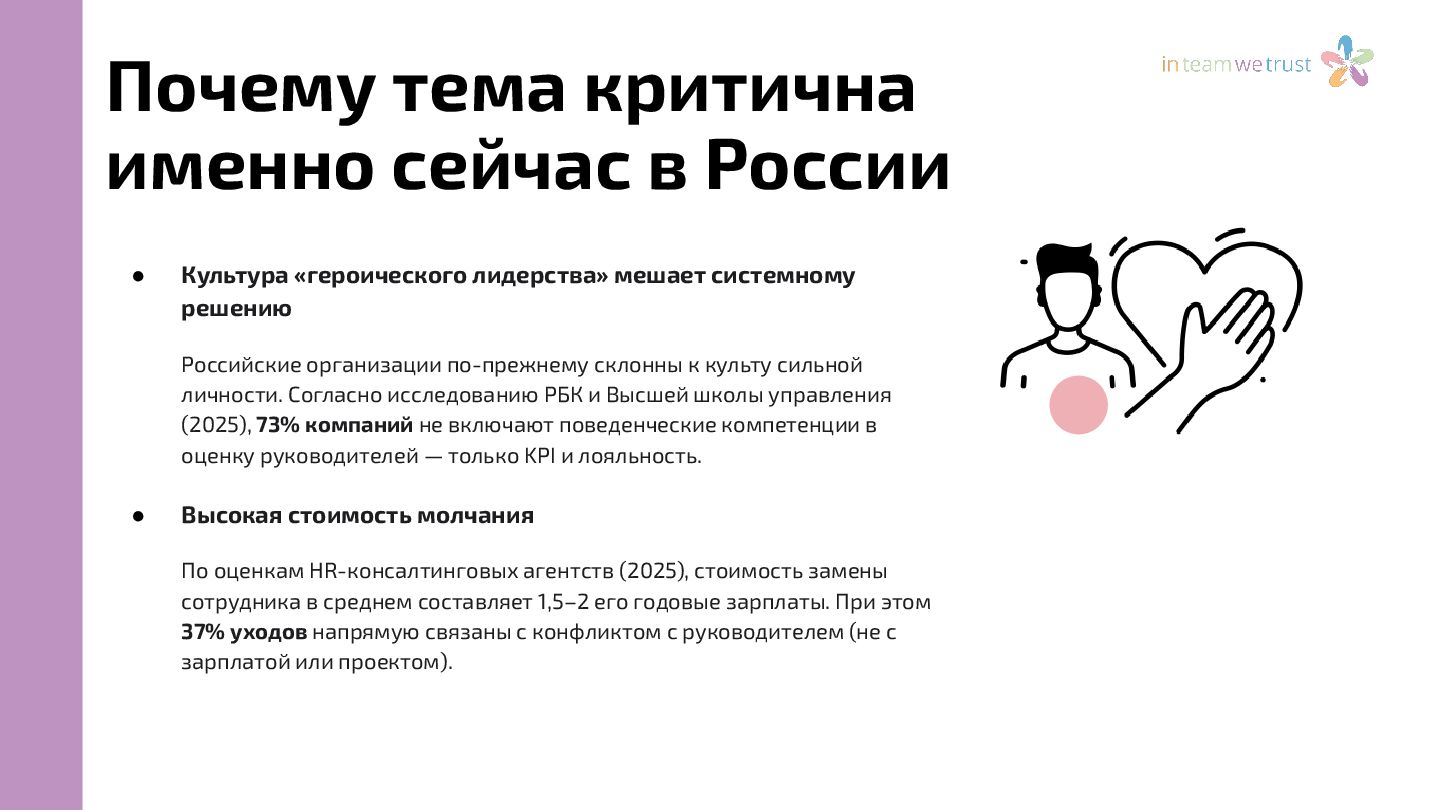 Презентация предназначена для руководителей, HR-специалистов, коучей, тимлидов и всех, кто стремится строить устойчивые, психологически безопасные и эффективные команды.