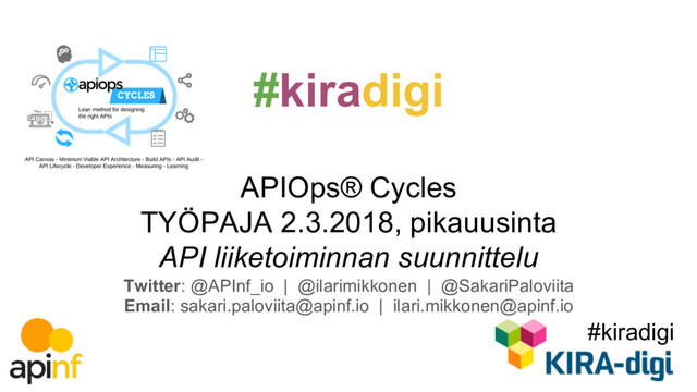 Tämä esitys sisältää vain prosessin API liiketoiminnan suunnitteluosuuden ja on suunnattu Kiinteistö- ja rakennusalalle (KIRA) osana Suomen #kiradigi -kärkihanketta.