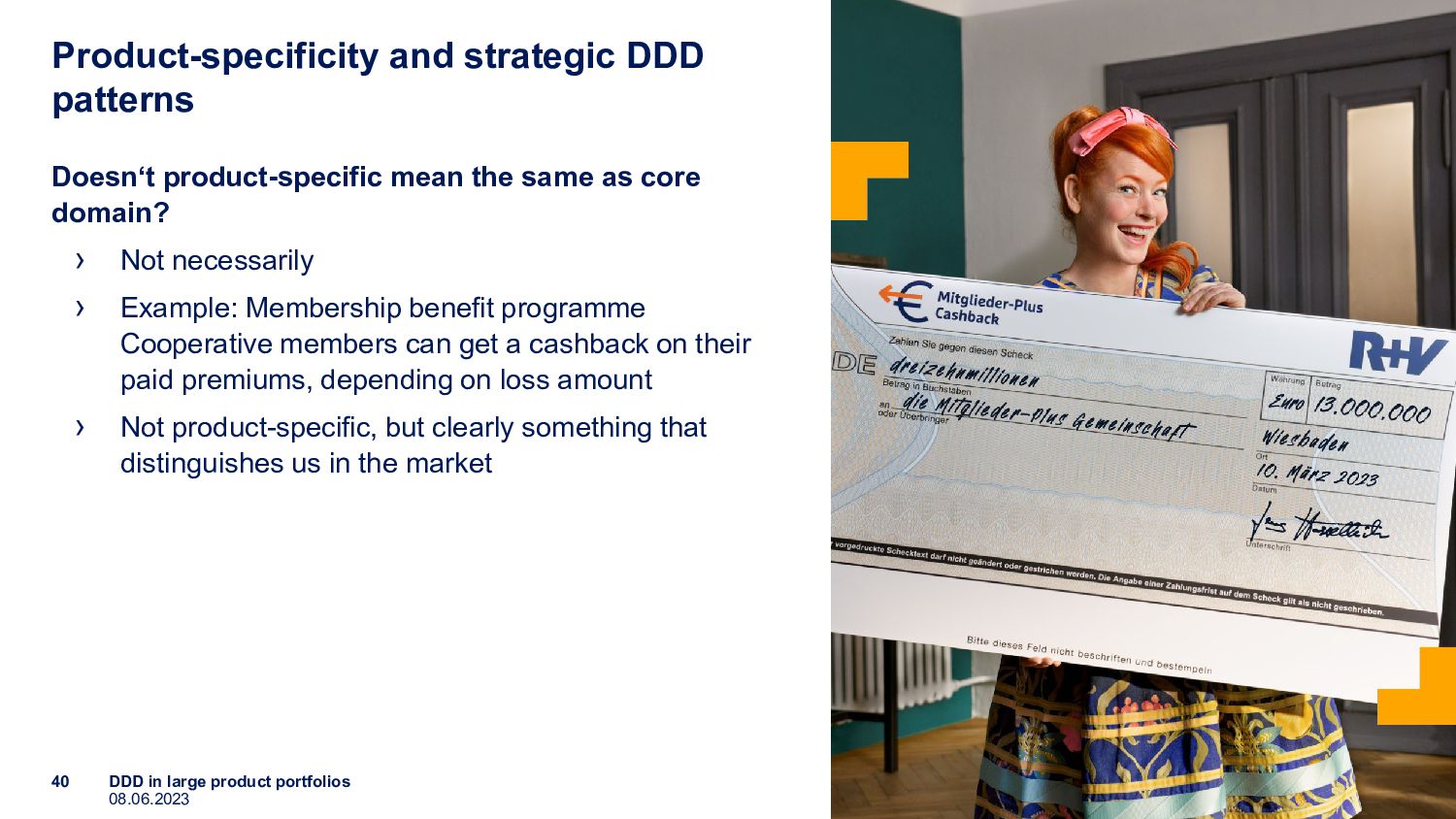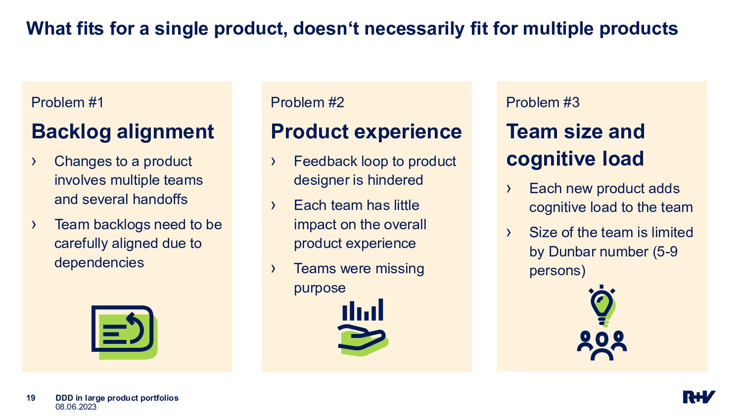 At R+V, one of Germany's biggest insurance companies, we took a semi-greenfield approach to create a product platform for property and liability insurance products. On our ongoing journey, we rely heavily on DDD principles and adjacent concepts like Team Topologies.