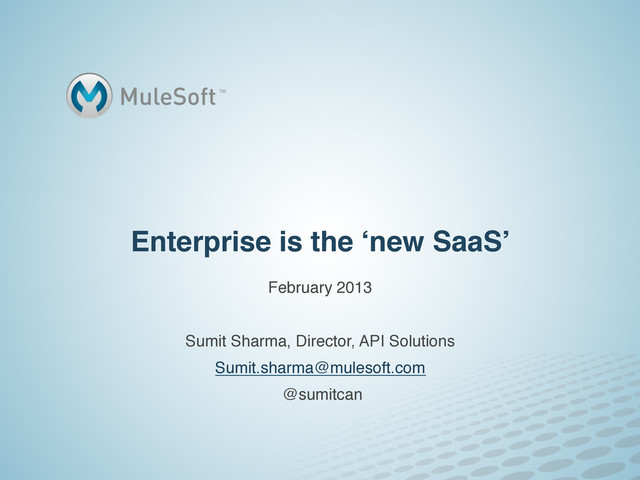 Enterprise is the ‘new SaaS’! February 2013! ! Sumit Sharma,