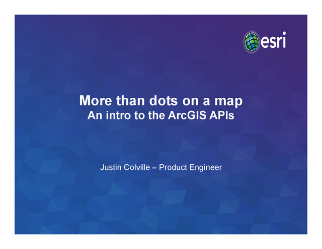 ArcGIS APIs Justin Colville – Product Engineer