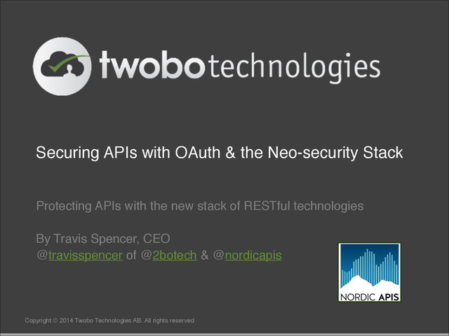 Travis Spencer: CEO @ Twobo Technologies Session: Security and Testing API Strategy & Practice Conference, Amsterdam 2014