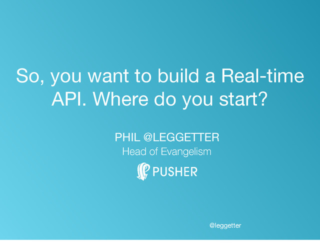 you start? 1. Understand & Identify your valuable Real-Time Data (Events) 2. Define the API Consumer and choose Transports 3. Decide on the best Communication Pattern 4. Can an existing Real-Time Framework help? 5. We need better Real-Time API tooling