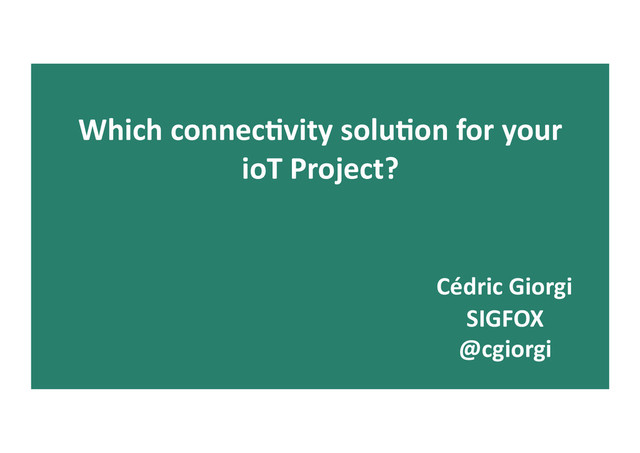 messages/day (Less for less messages) • SIGFOX Ready Cer%fica%on Program: for transceivers, modules and end products => from 2,5k€ to 10k€ • Worldwide Roll-‐Out – France, Spain, Holland OK. UK and Portugal in progress. – Munich, Graz, Milan, Warsaw, Lisbon, Dublin, Bogota Pilot Ci%es. SF, Berlin soon. – 12+ added countries by end ‘15