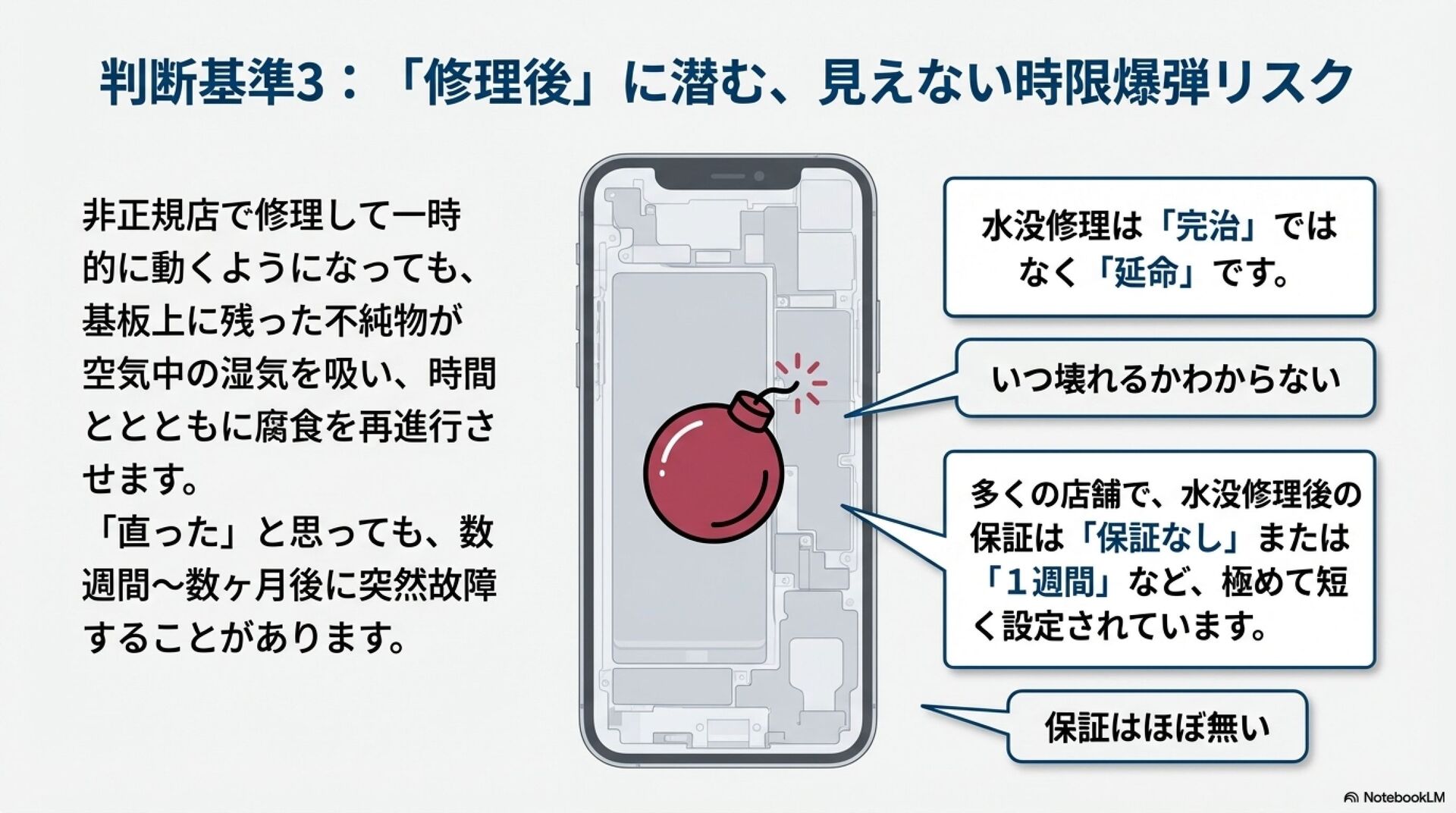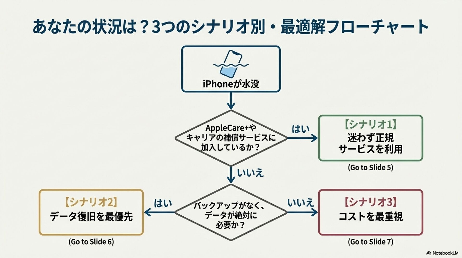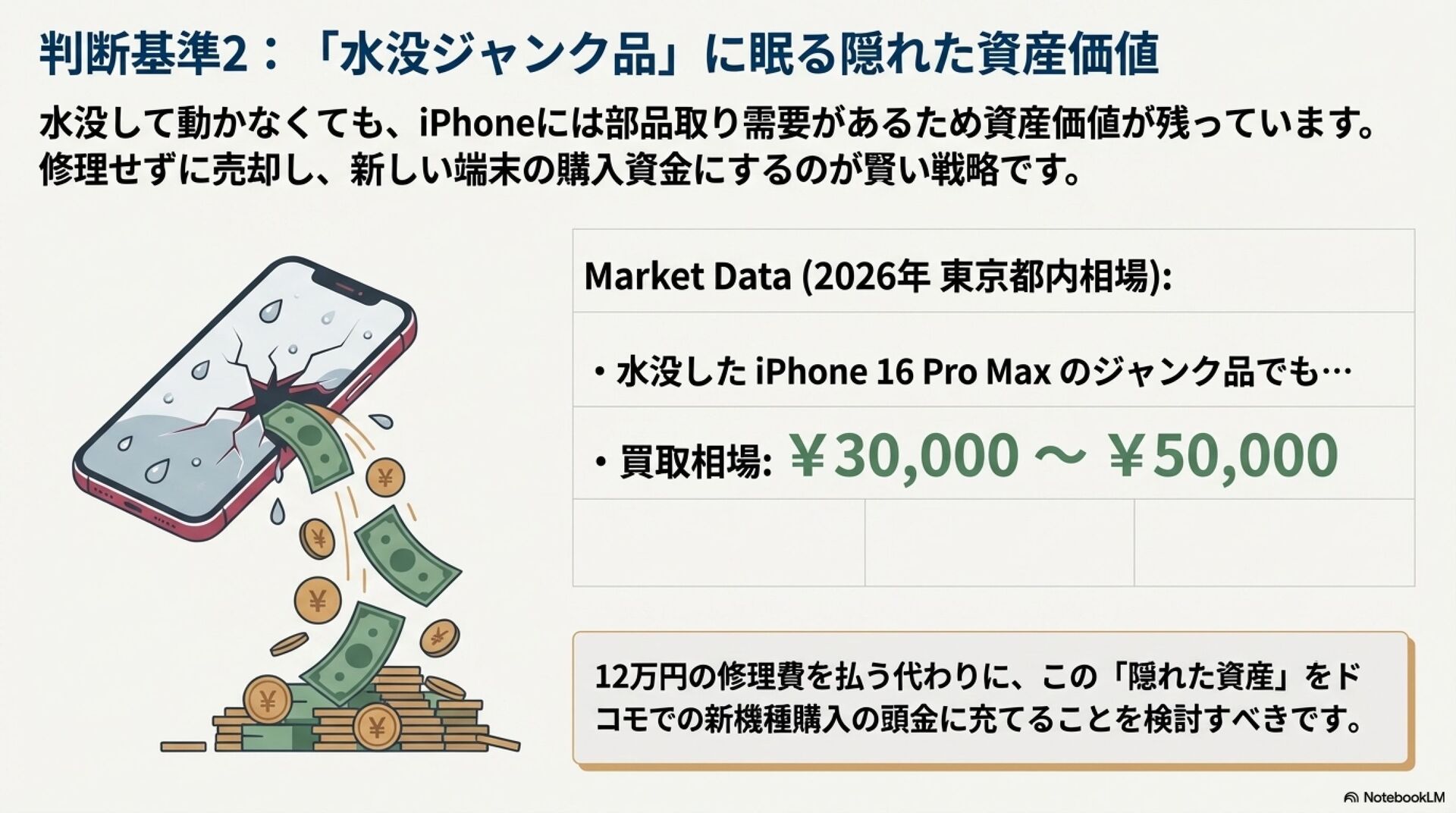 このガイドの目的は、単なる応急処置の方法を解説することではありません。あなたの本当の選択肢を再定義することです。これは「高リスクな修理」に望みを託すか、それとも端末に残された「資産価値を活かした賢い機種変更」という新たな始まりを選ぶか、という戦略的な判断なのです。私たちのゴールは、あなたがこの困難な状況で感情に流されることなく、後悔のない最善の決断を下せるよう、明確な道筋を示すことです。