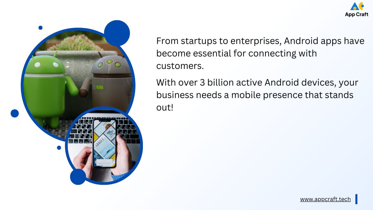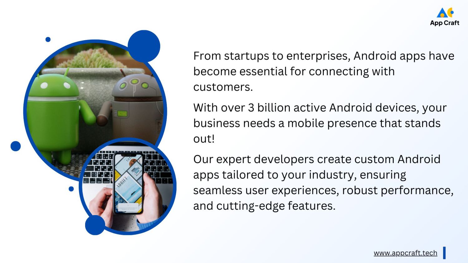 At Appcraft Tech, we specialize in providing top-notch Android Development services to help businesses create high-performing, user-friendly mobile applications. Whether you're looking to integrate seamless background processing, real-time data updates, or advanced multitasking capabilities, our team has the expertise to bring your vision to life.
