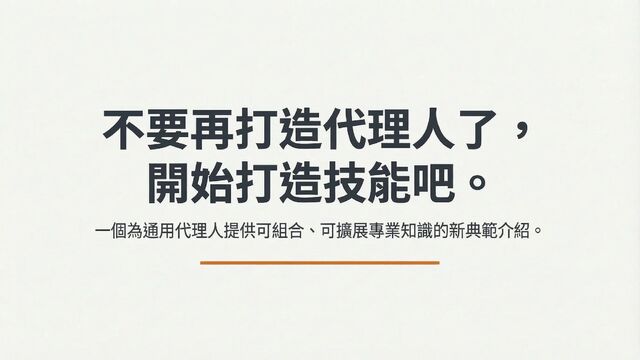 停止重複建構代理人,開始著手打造技能 (stop rebuilding agents and start building skills instead)。