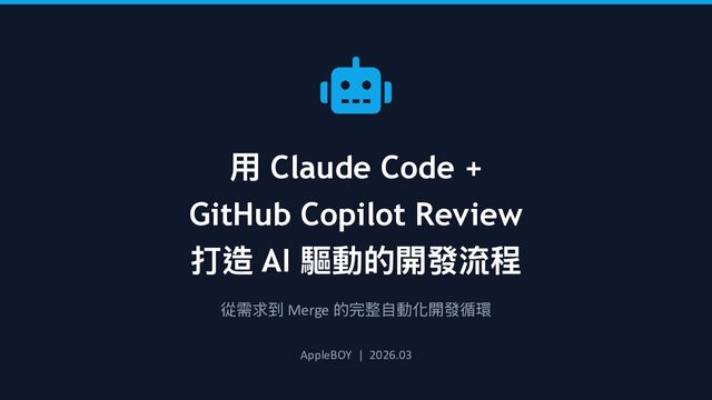 從需求到 Merge 的完整 自 動化開發循環 AppleBOY | 2026.03