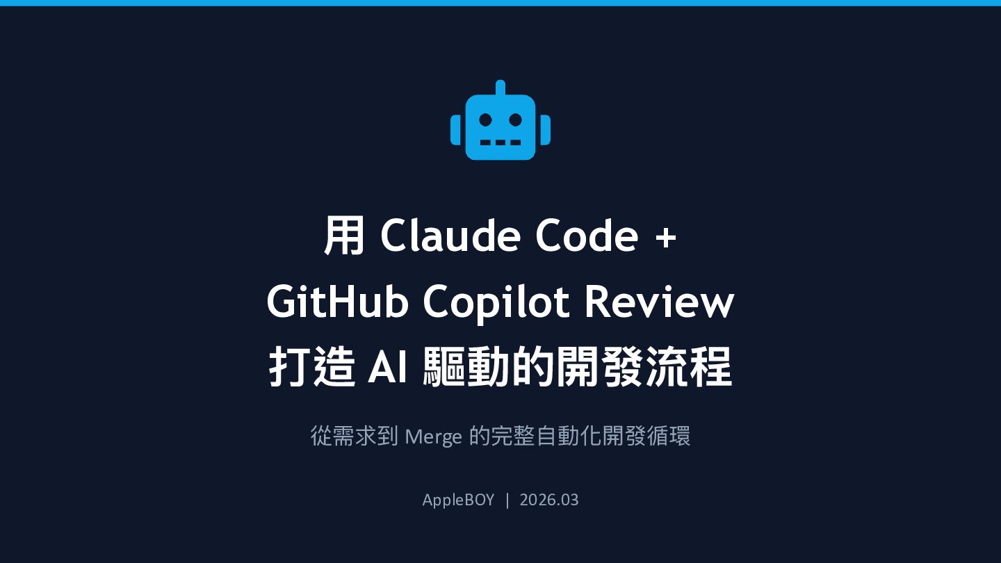 過去一段時間,我開始將 Claude Code 和 GitHub Copilot Review 整合進我的日常開發流程,結果讓我非常驚艷——原本需要半天的工作,現在經常在 1-2 小時內就能完成。這篇文章將分享我的完整流程,以及為什麼我認為開發者本身的技術能力,才是善用 AI 工具的關鍵。