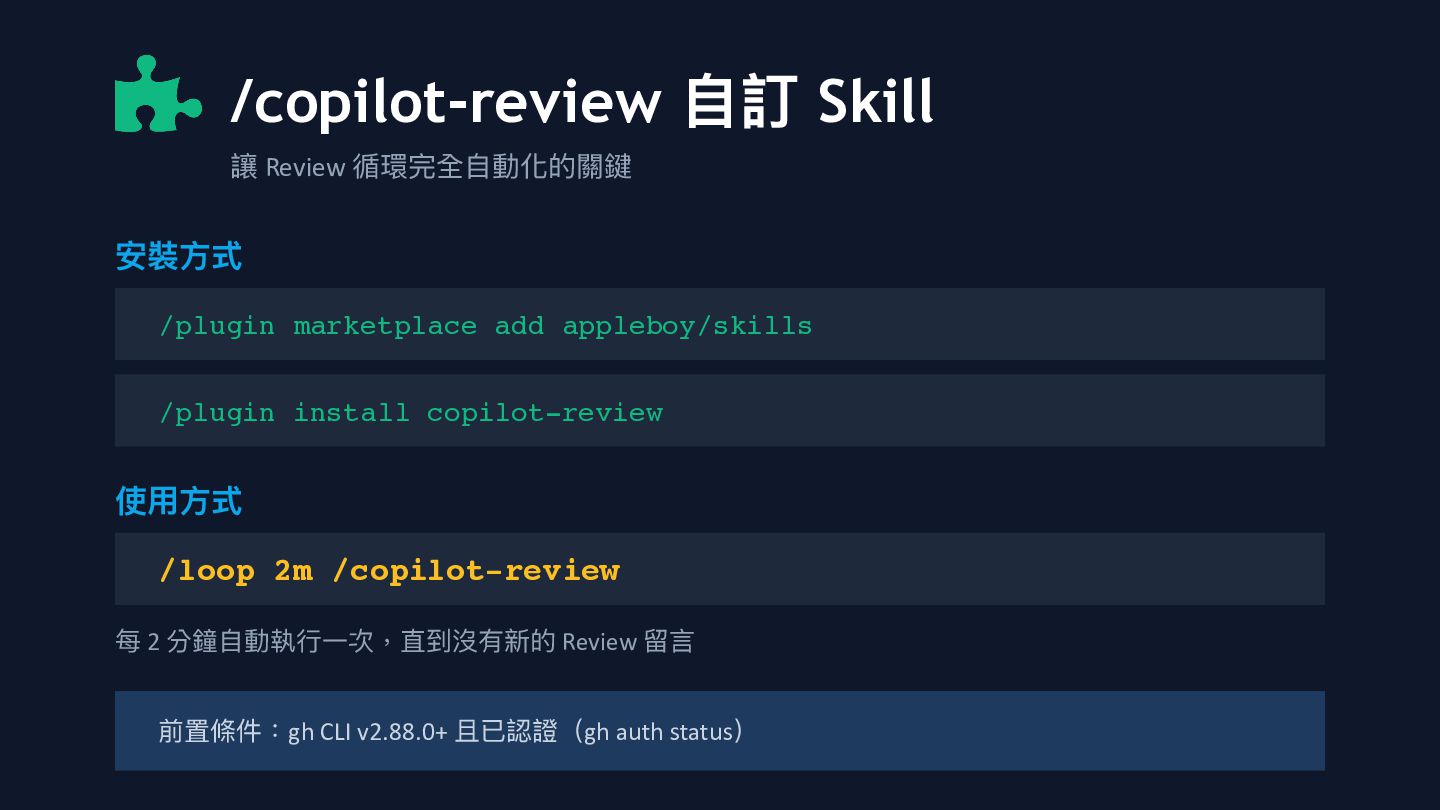 8. /copilot-review 自 訂 Skill 讓 Review 循環完全 自 動化的關鍵 安裝