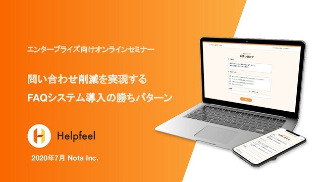 エンタープライズ向けオンラインセミナー 問い合わせ削減を実現する FAQシステム導入の勝ちパターン 2020年7月 Nota Inc.