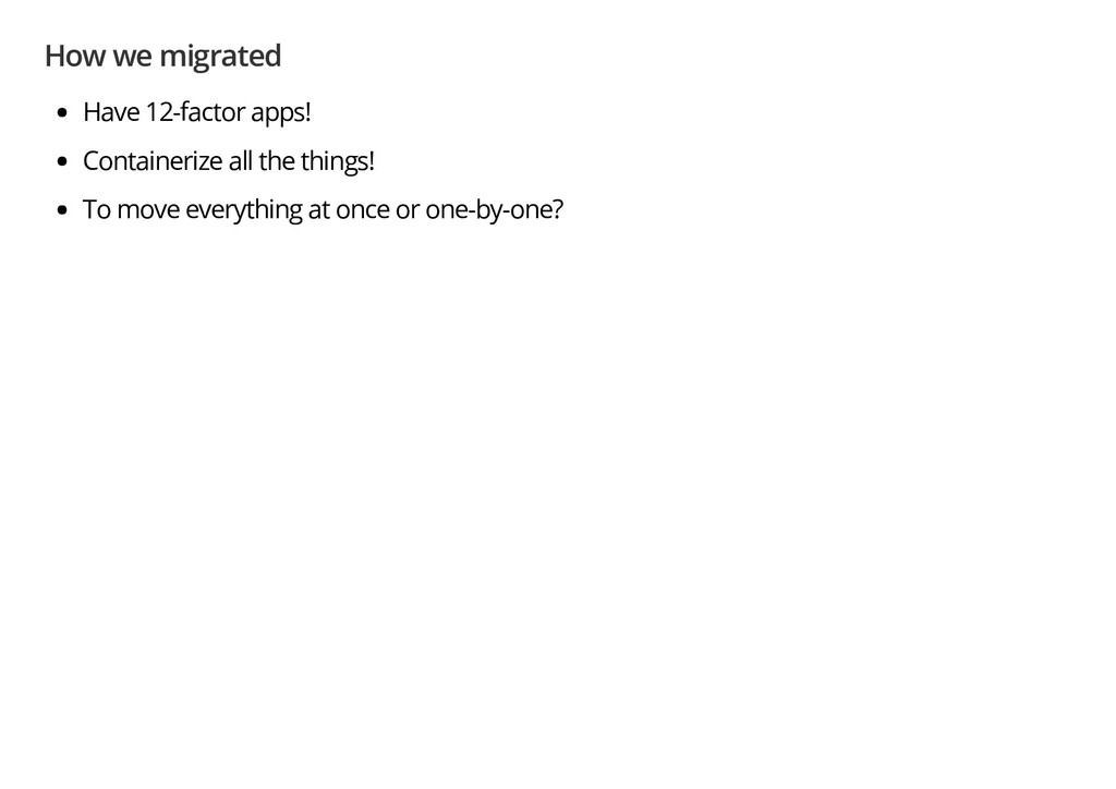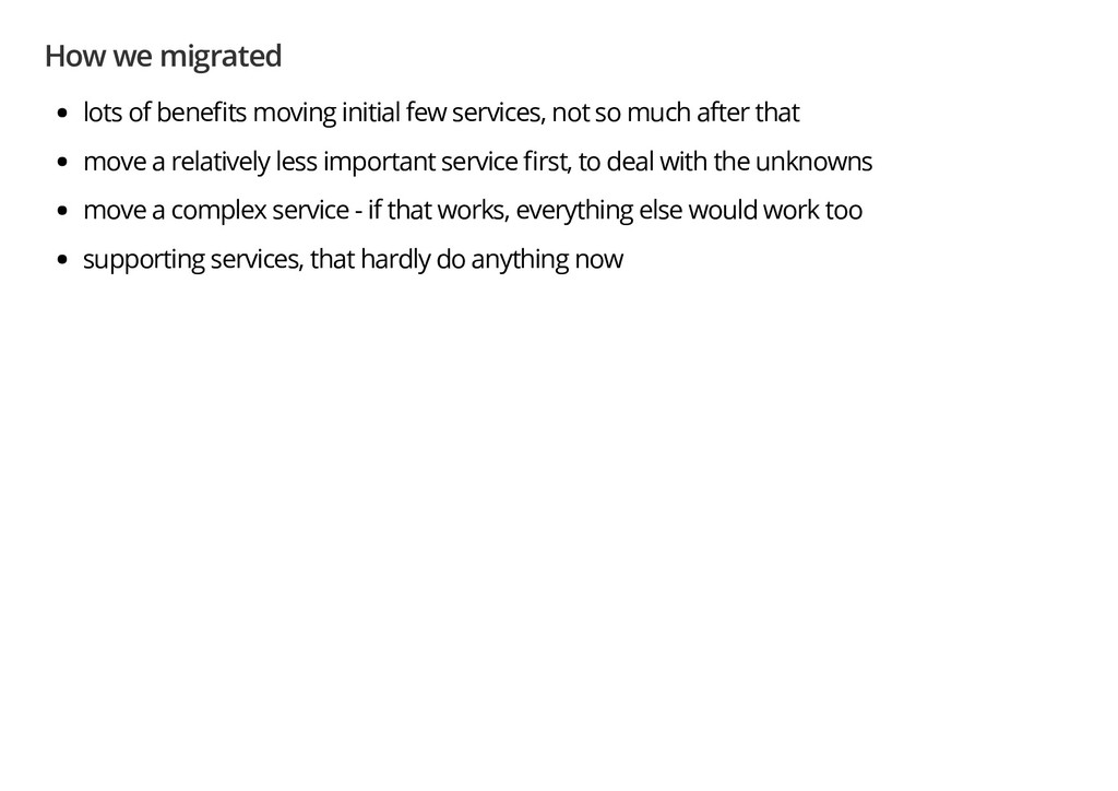 services, not so much after that move a relatively less important service rst, to deal with the unknowns move a complex service - if that works, everything else would work too supporting services, that hardly do anything now
