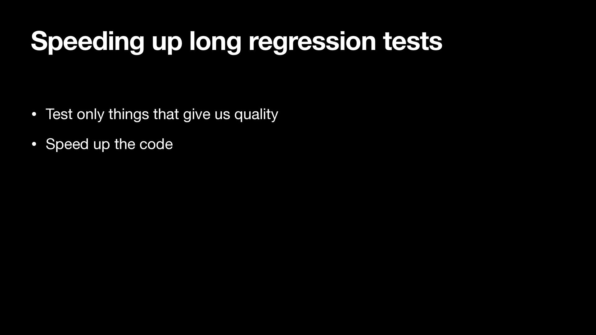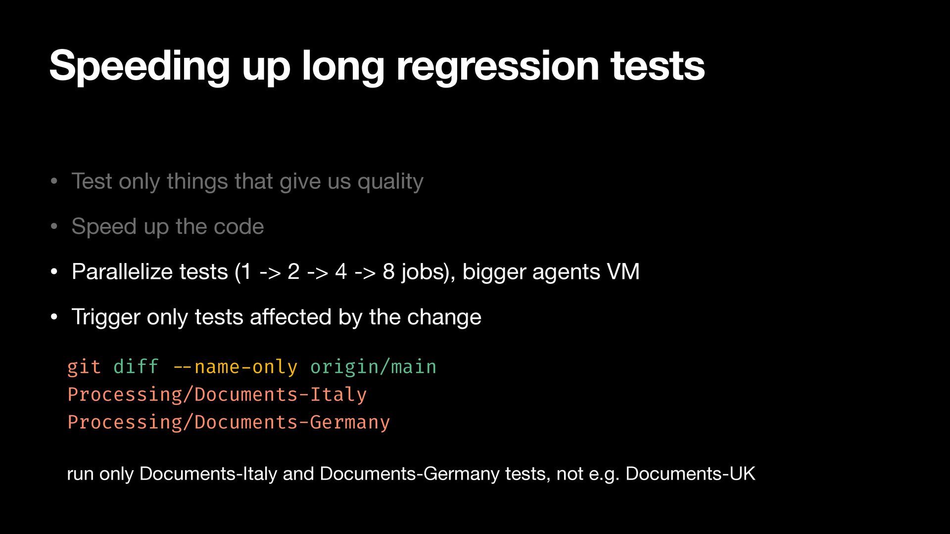 give us quality • Speed up the code • Parallelize tests (1 -> 2 -> 4 -> 8 jobs), bigger agents VM • Trigger only tests a ff ected by the change