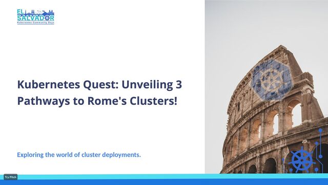 I’m thrilled to invite you to an enlightening session titled, "Kubernetes Quest: Unveiling 3 Pathways to Rome's Clusters!" We're embarking on an intriguing expedition to explore diverse strategies for creating Kubernetes clusters, aiming to empower both seasoned professionals and beginners with varied, robust approaches to Kubernetes installation.