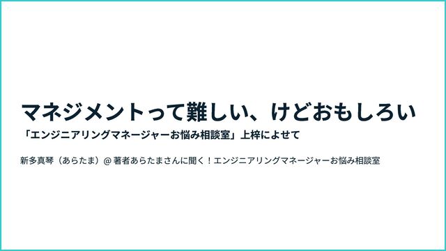 「著者あらたまさんに聞く!エンジニアリングマネージャーお悩み相談室」にて発表した内容です。