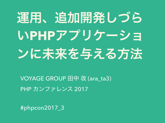 ӡ༻ɺՃ։ൃͮ͠Β ͍PHPΞϓϦέʔγϣ ϯʹະདྷΛ༩͑Δํ๏ VOYAGE GROUP ాத վ (ara_ta3) PHP ΧϯϑΝϨϯε