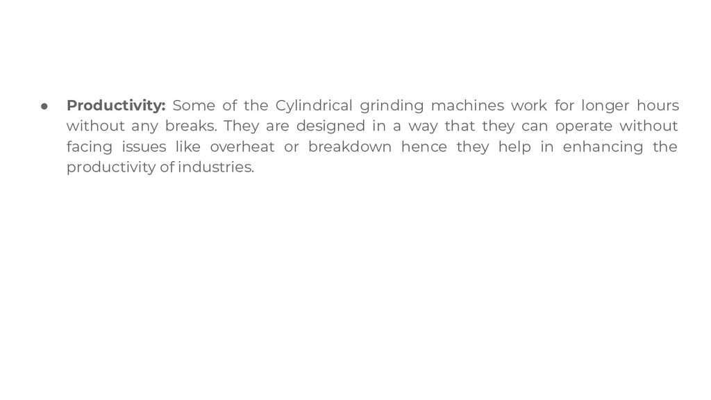 Grinding in tough materials: The materials that are grinded are not the same. Some of them are easy to grind while others are difficult due to their robust and durable properties. Cylindrical grinding machine manufacturers in India prefer using Cylindrical grinding since it helps in finishing even the toughest of the materials.