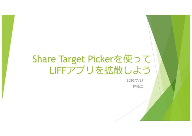 Share Target Pickerを使って LIFFアプリを拡散しよう 2020/7/27 捧隆⼆ 1