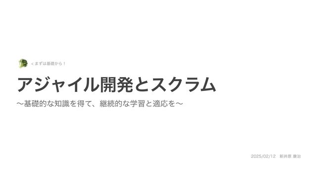 ΞδϟΠϧ։ൃͱεΫϥϜͷجૅ ຊͷΰʔϧʢ࠶ܝʣ ‣ ΞδϟΠϧ։ൃͱεΫϥϜʹ͍ͭͯɺجૅతͳߟ͑ํΛΔ͜ͱ ‣ ΞδϟΠϧ։ൃͱεΫϥϜͰҰ൪ॏཁͳɺܧଓతͳֶशͱదԠΛΔ͜ͱ ‣ εΫϥϜΛ࣮ફ͍ͯ͘͠தͰɺ໎ͬͨ࣌ͷώϯτΛಘΔ͜ͱ