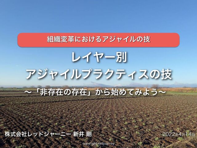 DPQZSJHIUSFEKPVSOFZ גࣜձࣾϨουδϟʔχʔ৽Ҫ߶ ݄ ϨΠϠʔผ ΞδϟΠϧϓϥΫςΟεͷٕ ʙʮඇଘࡏͷଘࡏʯ͔Β࢝ΊͯΈΑ͏ʙ ৫มֵʹ͓͚ΔΞδϟΠϧͷٕ