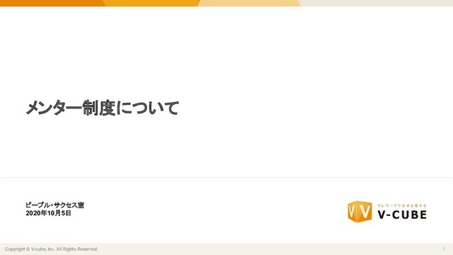 Copyright © V-cube, Inc. All Rights Reserved. ピープル・サクセス室 2020年10月5日 メンター制度について