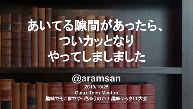 2019年10月25日に開催された 【エンジニア交流会】趣味でそこまでやっちゃうのか!趣味テックLT大会 https://gaiax.connpass.com/event/147227/ 当イベントで発表した資料です。