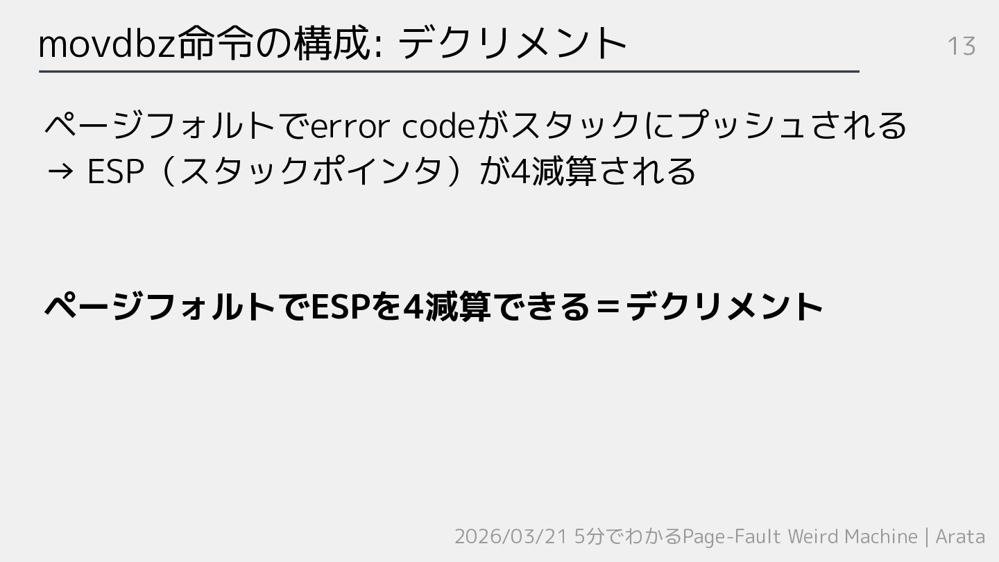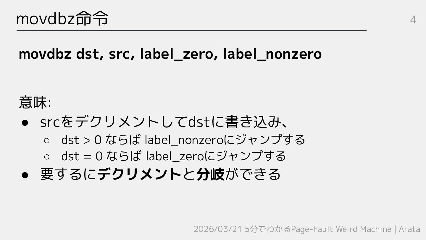 2026/03/21 5分でわかるPage-Fault Weird Machine | Arata movdbz dst, src, label_zero,