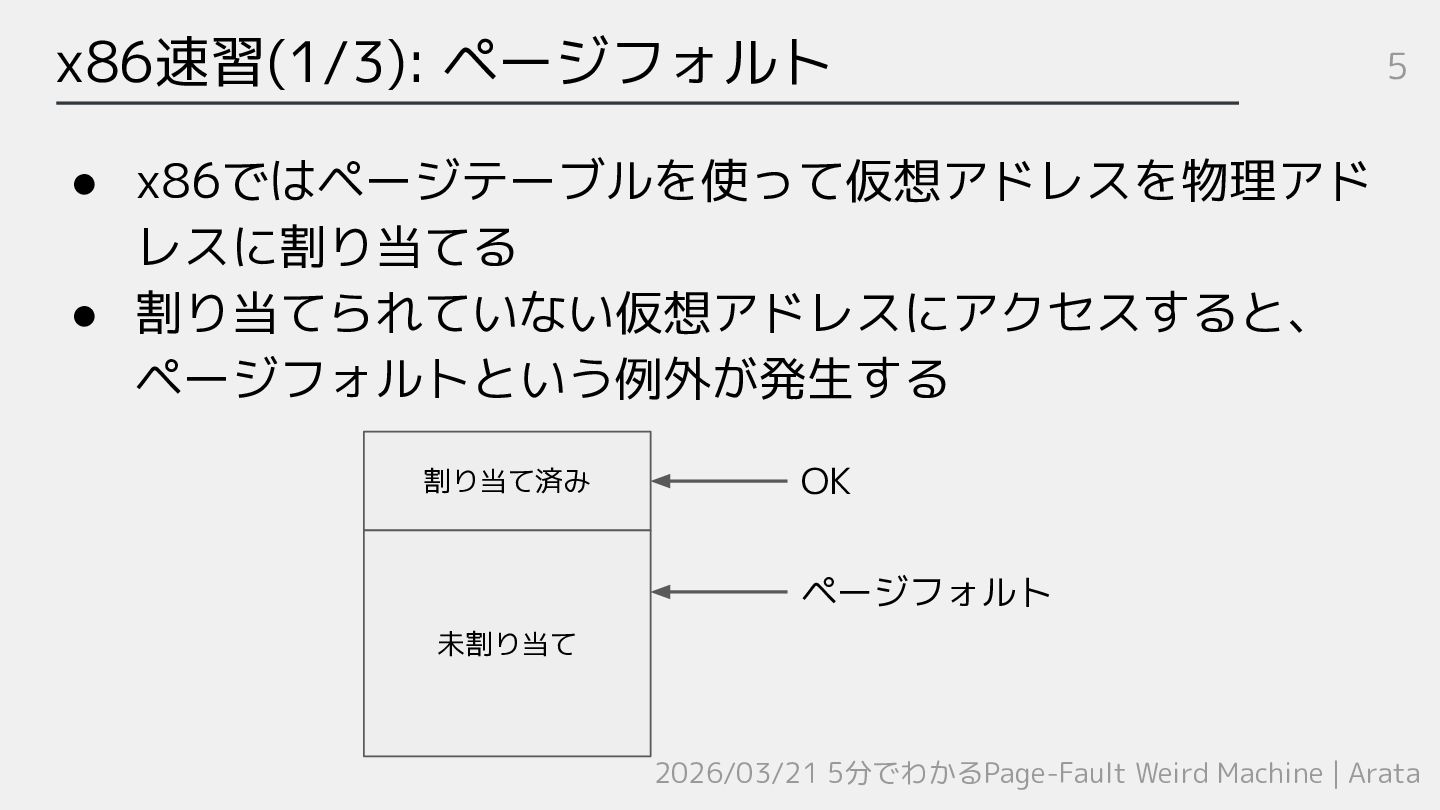 2026/03/21 5分でわかるPage-Fault Weird Machine | Arata ✅ Q1. ページフォルトを発生させる方法 Q2.