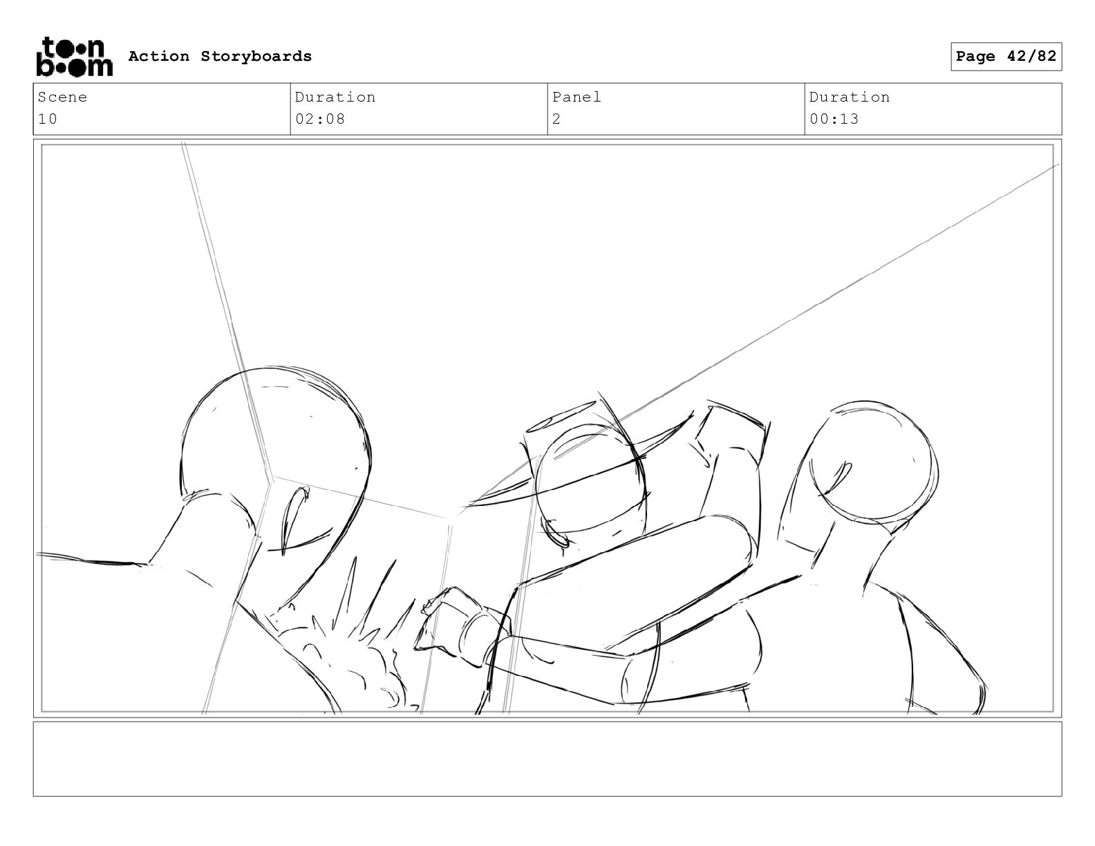Scene 10 Duration 02:08 Panel 2 Duration 00:13 Action Storyboards