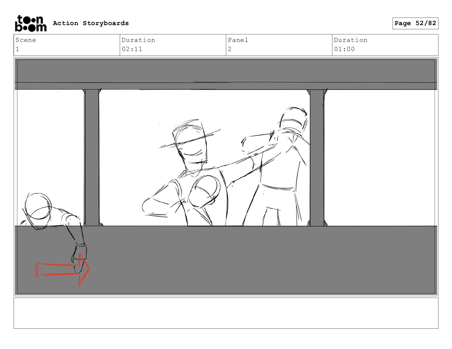Scene 1 Duration 02:11 Panel 2 Duration 01:00 Action Storyboards