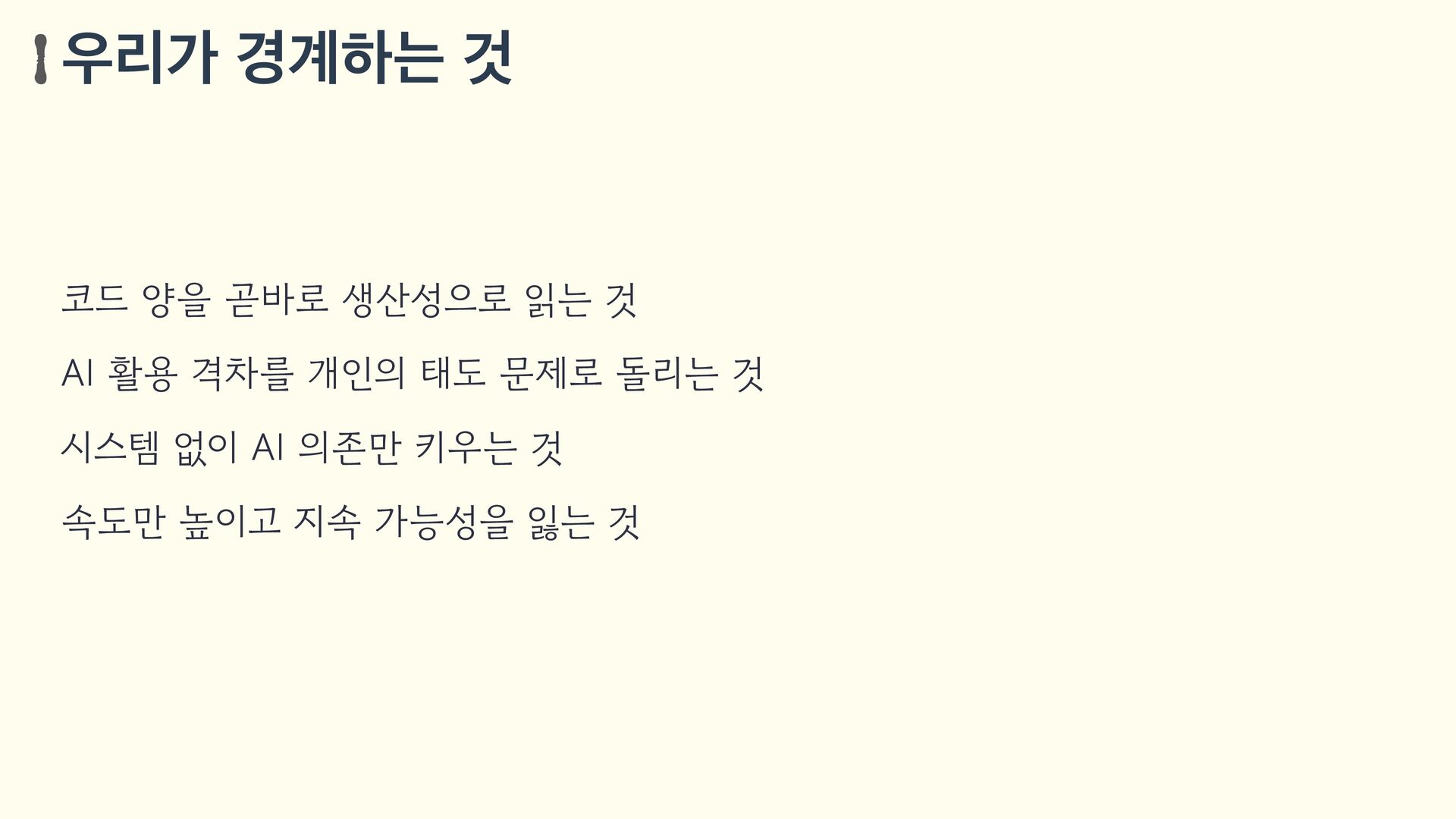 활용 격차를 개인의 태도 문제로 돌리는 것 코드 양을 곧바로 생산성으로 읽는 것 속도만 높이고 지속 가능성을 잃는 것