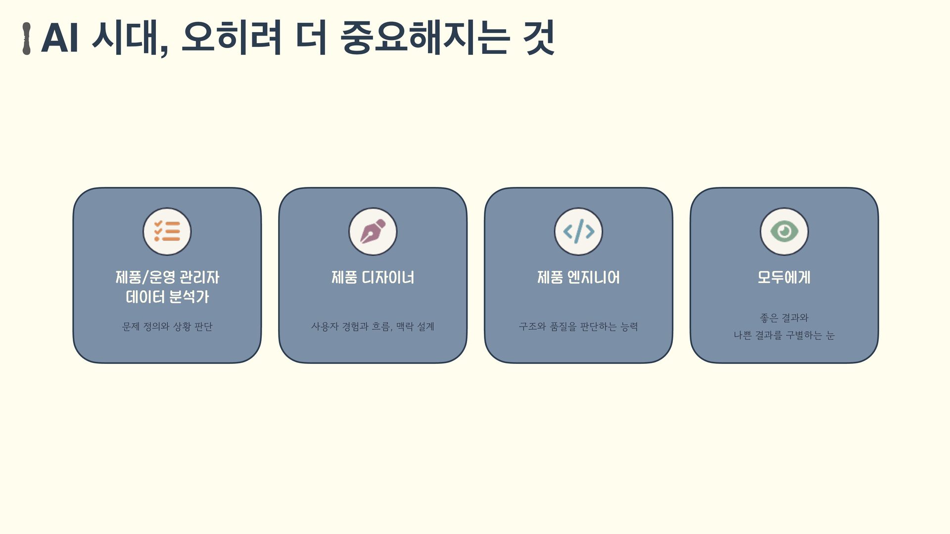 ݽفীѱ 문제 정의와 상황 판단 사용자 경험과 흐름, 맥락 설계 구조와 품질을 판단하는 능력 좋은 결과와 나쁜 결과를 구별하는 눈