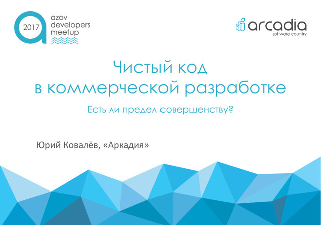 Данный доклад предлагает взглянуть на проблему искоренения грязного кода при разработке и поддержке крупных коммерческих проектов.