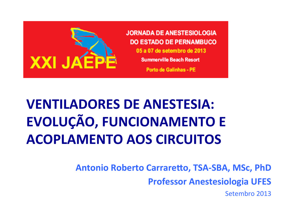 AOS CIRCUITOS Antonio Roberto Carrare>o, TSA-‐SBA, MSc, PhD Professor Anestesiologia UFES Setembro 2013