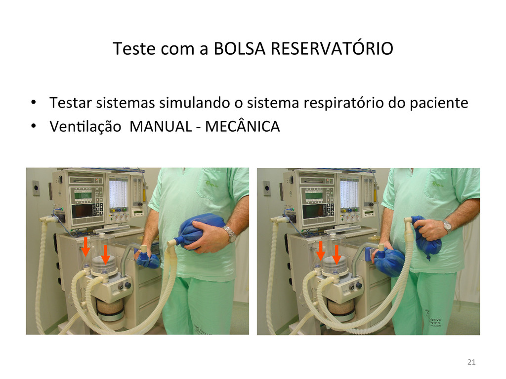 21 Teste com a BOLSA RESERVATÓRIO • Testar